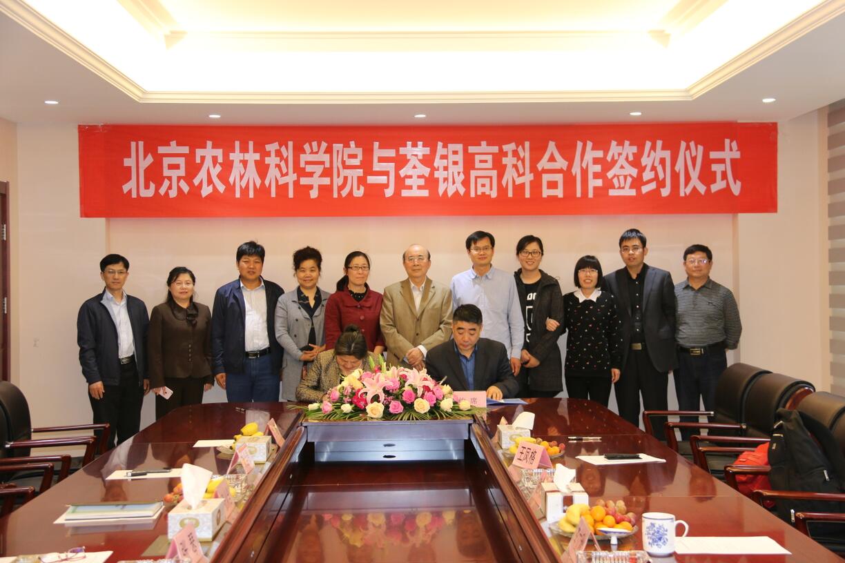 ? ?2017年4月20日下午,荃銀高科與北京農(nóng)林科學院簽約儀式在公司總部順利舉行,雙方就玉米科研育種及品種開發(fā)達成合作。中國種子協(xié)會副會長兼秘書長李立秋,北京農(nóng)林科學院玉米研究中心主任趙久然及其團隊代表,荃銀高科董事長張琴,副總經(jīng)理張從合、王瑾、葉紅等出席了簽約儀式,會議由公司副總經(jīng)理朱全貴主持。