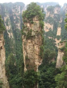 8日早上,我們乘坐“世界第一梯”——百龍?zhí)焯葜猎医绶屙敚@里是舉世聞名,奇特罕見的砂巖地貌。舉目遠(yuǎn)望,三千奇峰盡收眼底,怪石嶙峋,星羅棋布,雄險(xiǎn)秀野,神態(tài)各異。峽谷深處,千百根石峰石柱奇?zhèn)ネ涣ⅰ>椭?,如英武將帥;嵯峨之峰,似勇猛壯士。天氣陰沉,下起小雨,此時(shí),峰谷內(nèi)云翻霧涌,數(shù)座山峰如中流砥柱巋然屹立于云霧之中,云海淼淼,如入蓬萊仙境,那里面一定住著神仙吧。