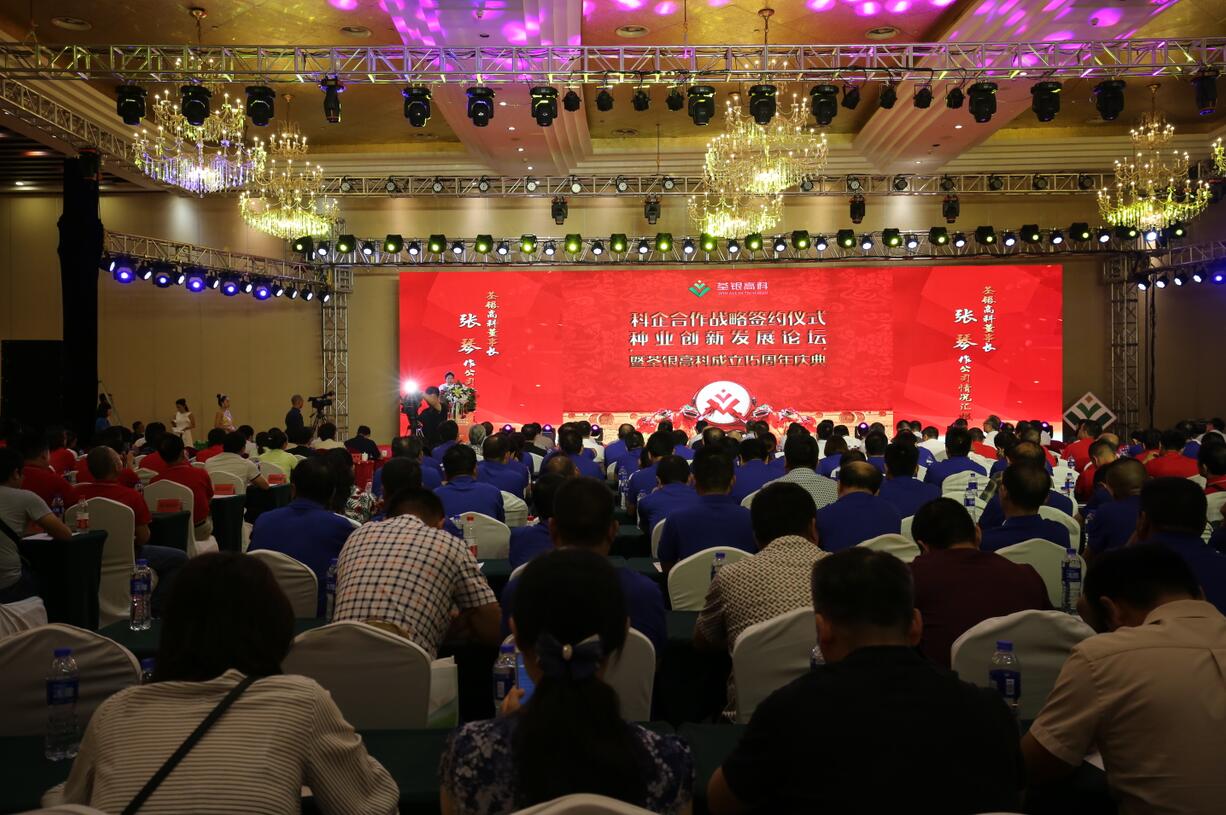 十五載風(fēng)雨兼程,十五載春華秋實(shí)!2017年8月29日,科企合作戰(zhàn)略簽約儀式·種業(yè)創(chuàng)新發(fā)展論壇暨荃銀高科成立15周年慶典大會(huì)在合肥隆重舉行。農(nóng)業(yè)部種子局局長(zhǎng)張延秋,農(nóng)業(yè)部科教司司長(zhǎng)廖西元,中國(guó)科學(xué)院院士、國(guó)家基因研究中心主任、上海植生生態(tài)所所長(zhǎng)韓斌,中國(guó)種子協(xié)會(huì)副會(huì)長(zhǎng)兼秘書長(zhǎng)蔣協(xié)新,安徽省科技廳廳長(zhǎng)宛曉春,安徽省農(nóng)業(yè)委員會(huì)副主任周世其、朱永東,“中國(guó)種業(yè)十大功勛人物”、荃銀高科創(chuàng)始人、安徽張海銀基金會(huì)理事長(zhǎng)張海銀先生,以及來(lái)自農(nóng)業(yè)部、中國(guó)種子協(xié)會(huì)和省、市有關(guān)部門的領(lǐng)導(dǎo)、專家、嘉賓,國(guó)家水稻商業(yè)化分子育種技術(shù)創(chuàng)新聯(lián)盟的科學(xué)家,戰(zhàn)略合作簽協(xié)單位代表,種業(yè)界同仁,還有來(lái)自印度尼西亞、孟加拉、巴基斯坦、越南等國(guó)家的20多位外賓朋友,計(jì)500多人參加了此次活動(dòng)。