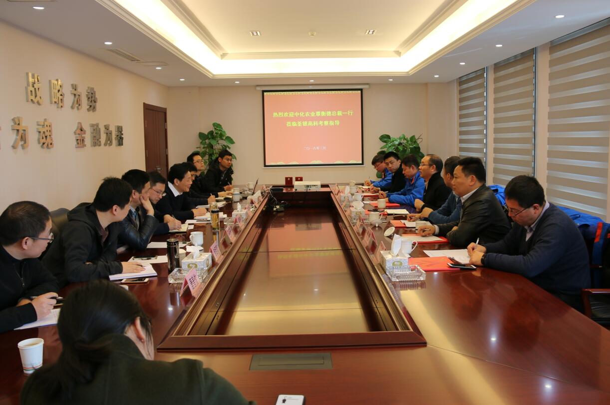 2017年3月10日,中化農業(yè)覃衡德總裁蒞臨荃銀高科考察指導。荃銀高科總經理助理王玉林熱情接待了覃衡德總裁一行,并陪同參觀、交流、座談。