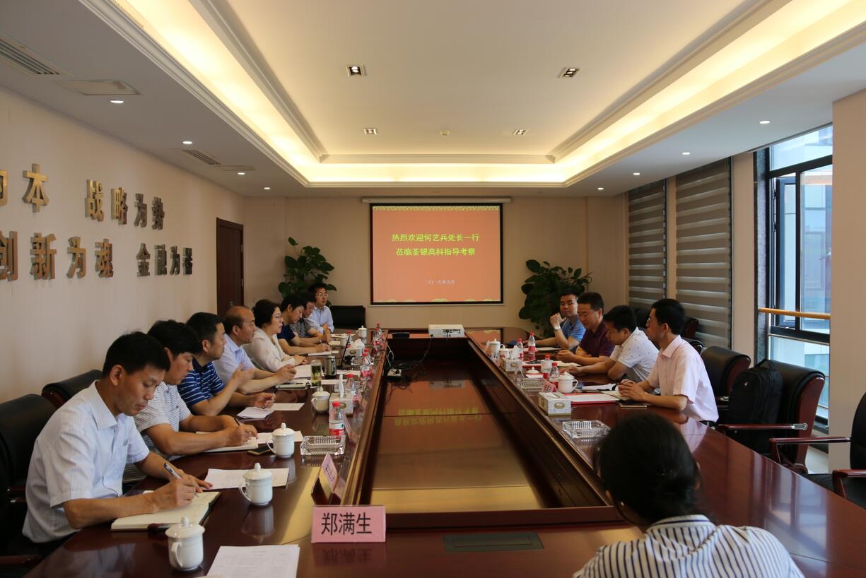 ??? 2018年5月29日,農(nóng)業(yè)農(nóng)村部科教司高新技術處處長何藝兵帶隊,全國農(nóng)技推廣服務中心處長邱軍、中國農(nóng)業(yè)科學院科技局處長林克劍、科教司項目專員吳圣勇博士蒞臨荃銀高科調(diào)研指導。安徽省種子管理總站副站長汪社寬、主任科員朱國邦,安徽荃銀高科董事長張琴、副董事長陳金節(jié)、副總經(jīng)理張從合、朱全貴等參加調(diào)研座談會。
