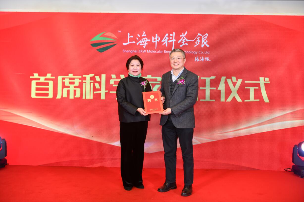 ? ? ?韓斌院士在致辭中首先向關(guān)心支持上海中科荃銀的各位領(lǐng)導(dǎo)、嘉賓表示感謝。他表示,基礎(chǔ)研究與應(yīng)用研究結(jié)合,一定能為育種創(chuàng)新開(kāi)辟出新路子。上海中科荃銀的成立既有挑戰(zhàn),更是機(jī)遇,上海中科荃銀各團(tuán)隊(duì)將珍惜機(jī)遇,努力為中國(guó)種業(yè)技術(shù)創(chuàng)新與技術(shù)進(jìn)步作貢獻(xiàn)!會(huì)上舉行了上海中科荃銀首席科學(xué)家聘任儀式,上海中科荃銀董事長(zhǎng)張琴女士為韓斌院士頒發(fā)聘任證書(shū)。